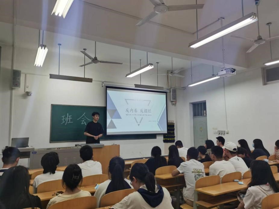 会上,班长田润昊、学习委员何文坤就上学期期末考试成绩进行了分析和总结,建议同学们向榜样学习;李景明、沈茗熙、李雨珈三名同学进行了学习心得的分享;心理委员蒿江同学针对大学期间同学们的心态上的转变和心理上的困惑为大家进行了讲解,进一步加深了同学们对于心理健康的重视。