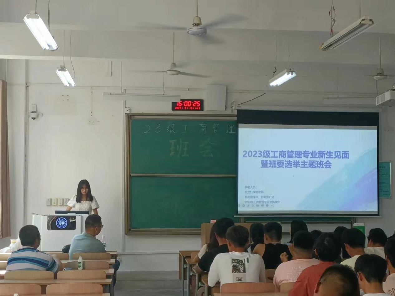 3.班委选举。历经学生申请——班主任面试——全员选举的流程,秉乘民主公平公正的原则,最终选举出了23级工商管理1班和2班的班长、团支书和学习委员。成功当选班委的同学在老师同学的面前立下庄严承诺——为共同建设优良学风、团结一致的班级而笃行不怠。