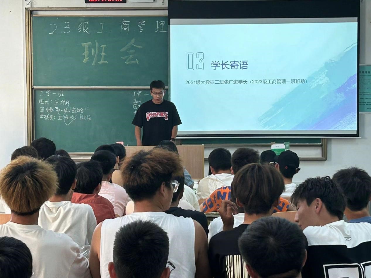 最后,由2023级工商管理二班班助侯洋洋作班会总结,希望通过本次班会,同学们可以快速适应大学生活,找到新目标新方向,铭记恩师嘱托,不忘庄严承诺。(撰稿:李勃、候洋洋、张广进;审核:代锴)