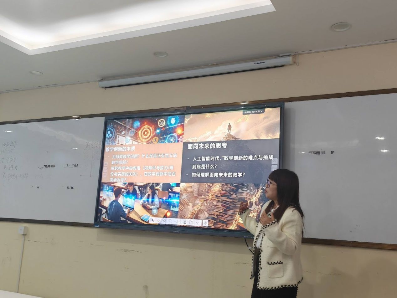 李蒙老师首先介绍了她参加教学会议和教学培训的心得和感悟,然后重点以《企业管理》课程的教学实践为例,为全系教师分享了关于课程导入、课程设计、教学互动、考核设置等方面的经验。