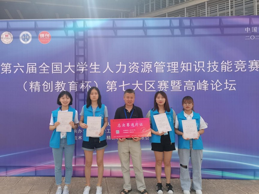 6月19-20日,2021年第六届全国大学生人力资源管理知识技能竞赛(精创教育杯)西北大区赛在西安工业大学未央校区举行,我院人力资源管理专业学生高静颖、史甜、王佳和谢欣言组建的“taptap188代表队”在指导老师郑煜、王宁的带领下,经“理论知识考评”与“软件模拟经营”两大模块的激烈比赛斩获西北大区赛一等奖,并晋级全国总决赛。