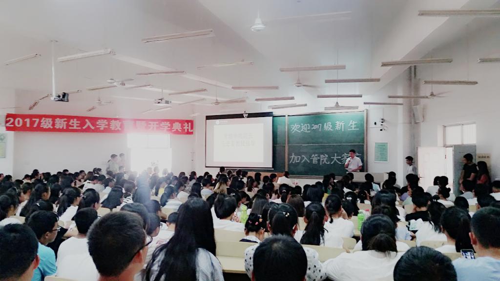 随后,教师代表人力资源管理系马贵梅老师发言,她从为什么进入大学、大学应该学什么和大学中应该培养的习惯和能力三个方面对同学们提出了期望和建议。最后,2015级信息管理与信息系统专业毛晨同学和2017级行政管理专业王晶同学分别代表在校生和新生进行了发言。