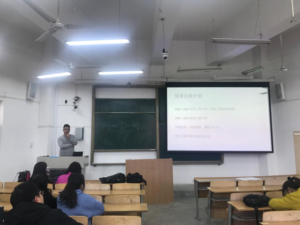 2019年“学长有话说”系列讲座第一讲于3月12日,第二讲于3月17日在临潼B-235进行,分别邀请了2011级校友程涛和2003级校友高云霄。信管专业3名专业教师以及2017级、2016级和2015级全体学生聆听了讲座。