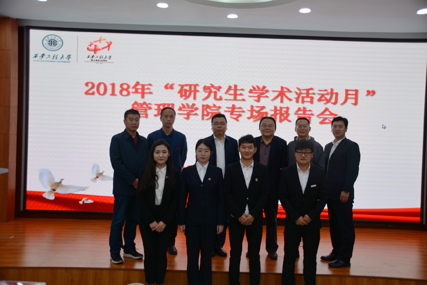 在研究生学术报告环节,由王进富教授指导的研究生陈振同学做《科技创新政策供需匹配模型构建及实证研究》的报告,由邵景峰副教授指导的研究生王蕊超同学做《基于行为分析的学习者选课健康状态研究》的报告,由郭伟教授指导的研究生孙雨童同学做《西咸纺织服装创新园(2018-2022年)发展战略规划》的报告。三位同学分别结合各自的科研经历与科研成果给大家做了详细的分享。校党委副书记赵小峰、导师代表郭伟、邵景峰对以上三位同学的汇报进行了精彩点评,并提出相关意见和建议,鼓励同学们在科研道路上继续进取,永攀高峰。参加报告会的学生代表围绕科研论文的写作、科研选题的思路等问题与报告人做了交流,同学们纷纷表示在科研方法、科研精神和学术态度上受到了深刻的启发,受益匪浅。