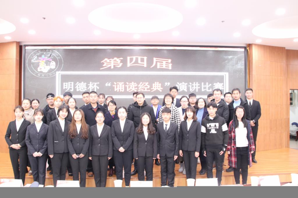 taptap点点188明德读书社举行第四届“诵读经典”演讲比赛于12月19日在临潼校区图书馆一楼报告厅举办。校团委书记王晓先、taptap点点188院长李艳、副党委书记于稀水、学生工作办公室主任刘蓉、人文学院团总支书记刘杨扬、理学院18级辅导员高丽君,taptap点点188团总支书记王馨可、辅导员吴昌敏及各学院学生一百余人参加了活动。