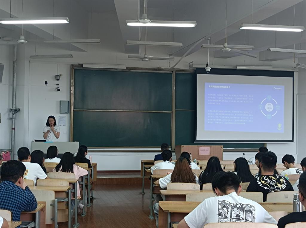 为辅助高校培养复合型人才,从2016年以来金蝶公司每年举行管理竞赛,让更多学生开拓眼界,接触和了解管理服务平台的软件操作应用,结合相关经管知识进行全面提升,增强自身适应社会的实力。讲座之后,金蝶公司的房老师为大家介绍了今年金蝶云管理创新杯大赛的基本情况。