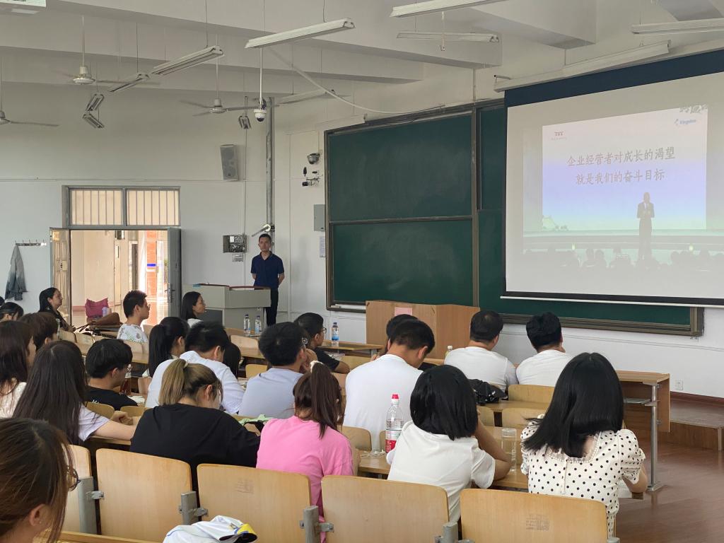 作为全国知名领先企业信息化管理、咨询及服务厂商,金蝶公司面对时代变革提出了“数字化转型=数字化技术+管理重构”的公式,为国内乃至国外知名公司的数字化转型指明了道路。另外,金蝶公司与飞科、温氏等多家巨头达成合作,为企业数字化转型提供服务。白经理在讲座中还介绍了ERP产品实施等相关内容,指出国家在“数字化人才”方面的稀缺,强调具备相关技能的人才对传统企业数字化转型和未来发展的重要性,提出“会软件,精财务,懂管理”的复合型人才的培养应该成为高校人才培养的重点。