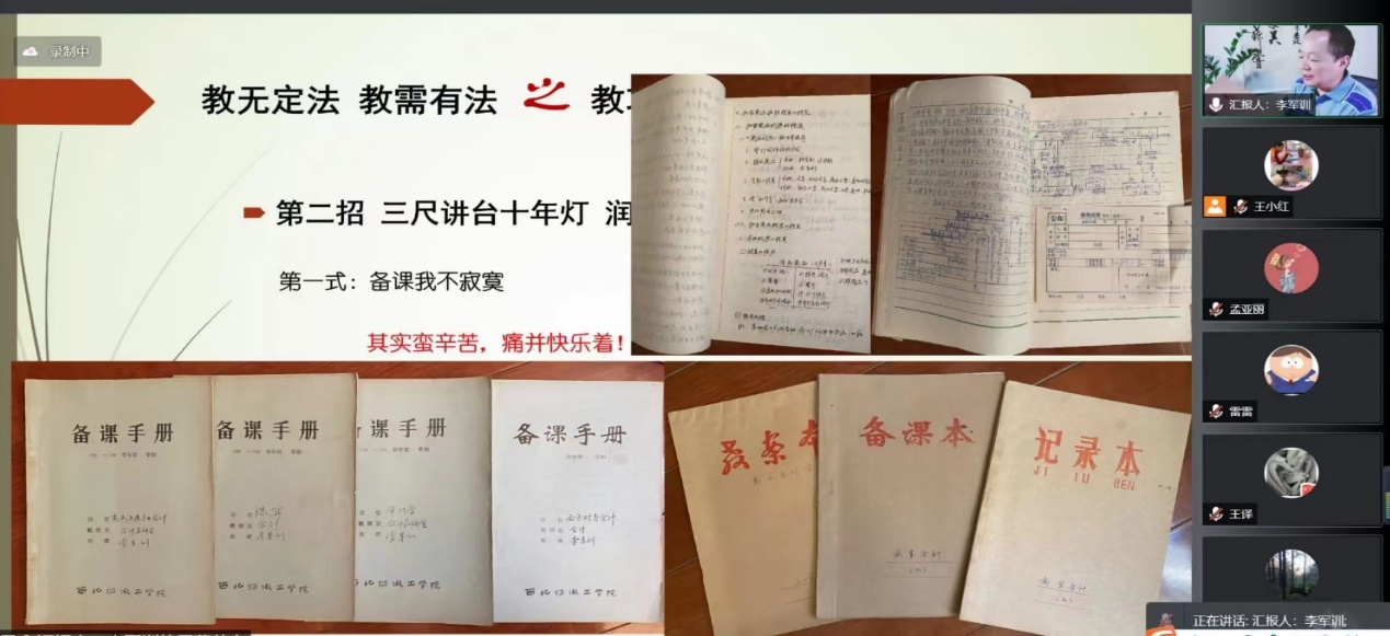 李老师准备充分,讲解风趣幽默,同时也给大家展示了自己多年前的备课手稿,生动阐释了如何从每个细节入手当好一名高校老师。在李老师讲述完毕后,会议上的每个老师都谈了自身的感受,纷纷表示收获颇丰,也深刻感受到了作为一名教师的光荣使命和义务。