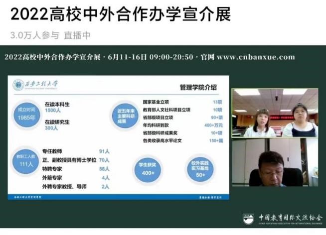 近日,由中国教育国际交流协会主办的“2022高校中外合作办学宣介展”于线上拉开帷幕,国内近百家高水平中外合作办学机构和项目共话新时代中外合作办学发展,中国教育电视台、新华网、人民日报、新浪教育、北青网等官网媒体均对本次活动进行关注报道。