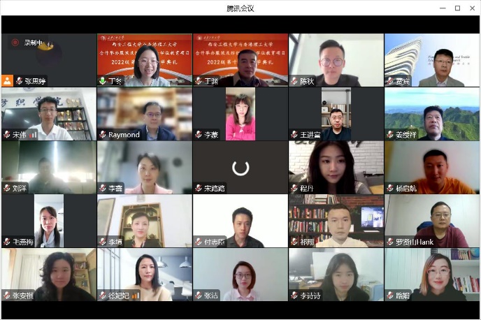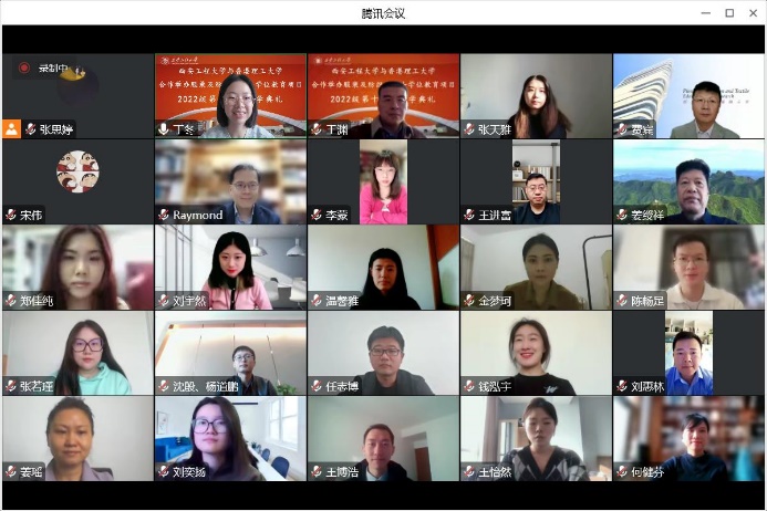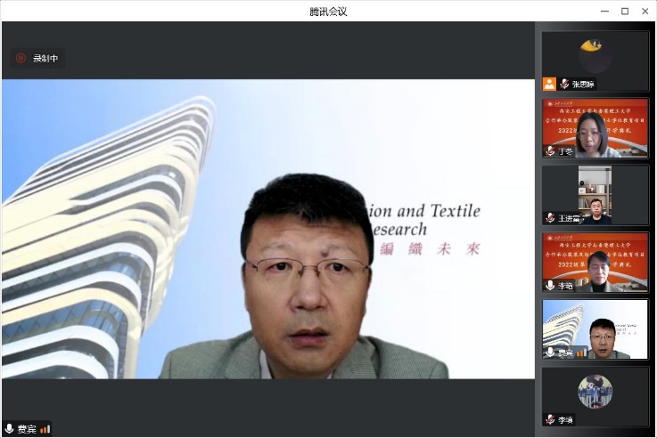 10月21日,我校与香港理工大学合作举办的服装及纺织品硕士学位教育项目(服装营销策划专业)第15期开学典礼在线上顺利举行,我校副校长王进富教授、香港理工大学时装及纺织学院暂任院长黄维扬教授、合作办学项目港方负责人费宾博士、项目资深理事会成员姜绶祥教授、taptap点点188院长李艳教授、taptap点点188副院长王渊教授、国际处领导、项目中方主管丁冬副教授、合作办学项目工作人员及第15期全体学生参加了开学典礼。