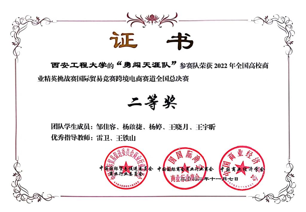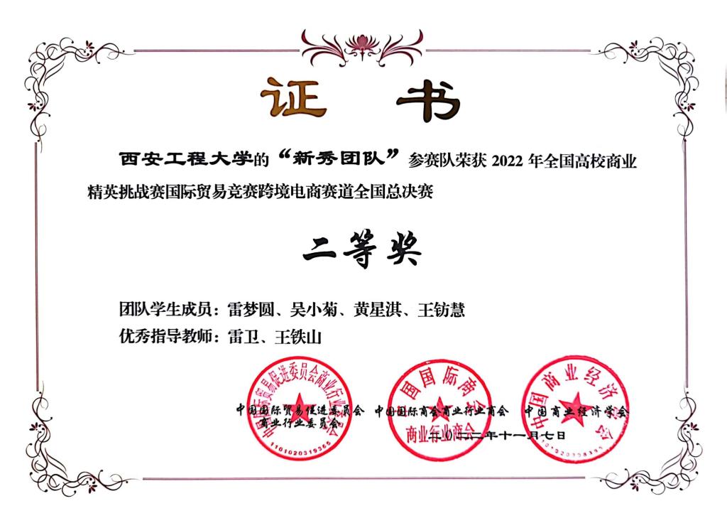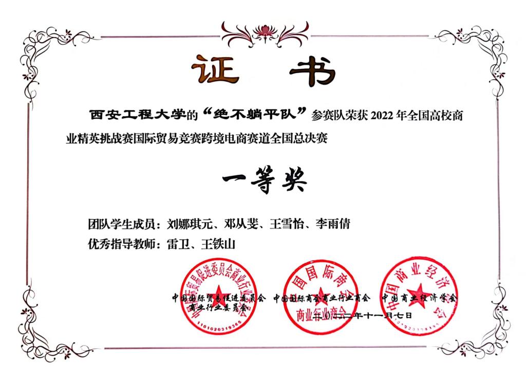 近日,由中国国际贸易促进委员会商业行业委员会、中国国际商会商业行业商会、中国商业经济学会联合主办的2022年全国高校商业精英挑战赛国际贸易竞赛跨境电商赛道全国总决赛在线上成功举办,来自全国的687支参赛队伍2000余人同台竞赛,taptap点点188学生取得全国一等奖1项、二等奖3项的好成绩,taptap点点188教师雷卫、王铁山被评为优秀指导教师。