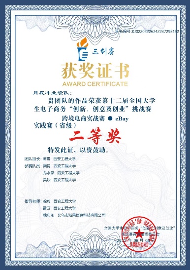 从今年3月份开始,历经半年的第十二届全国大学生电子商务“创新、创意及创业”挑战赛(简称三创赛)跨境电商竞赛,至8月落下帷幕。经贸系徐玲、雷卫、邵鹏三位老师指导的西工程大先进青年队(阿里巴巴国际站赛道,队员郑小颖、赵志宏、邱小洁、樊潇、郭帆)和月底冲业绩队(eBay赛道,队员陈雪、樊肖、龙水泉、吴沙)两支队伍经过半年的努力,分别获得省赛二等奖,这是我院学子首次在“三创赛”跨境电商赛道斩获奖项。