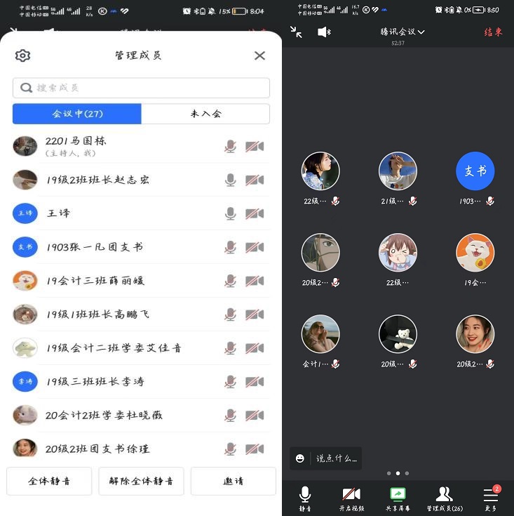 即使我们再努力,也挡不住时间的脚步,纵使我们坚定不移,依旧挡不住岁月的流逝,不知不觉中这学期已经过去了一半了。为了更好地了解同学们在开学以来的学习和生活情况,2023年4月21日晚上8点,在会计系王译老师的带领下,举行了学生线上座谈会议。会议主要内容包括学校的软硬件设施、对任课老师授课时的要求和建议等。参与者包括各年级班长、团支书和学习委员。在会议中,各年级代表积极表达了自己的意见和需要改进的方面。