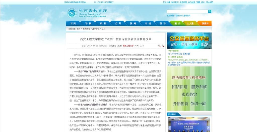 陕西省教育厅报道链接: http://www.snedu.gov.cn/jynews/gdxx/201704/08/66625.html