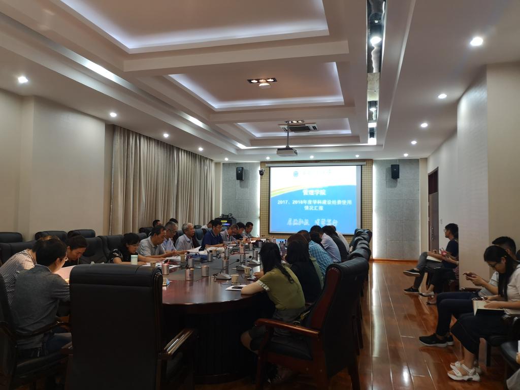 李艳院长根据学校通知要求,对2017、2018年学科建设专项经费使用情况进行梳理、总结,从学科建设经费总预算与分块预算、全部支出情况及明细、经费使用的申请与批准程序、经费使用效果、经费使用中存在的问题以及2019年度学科建设及经费使用的具体安排六个方面进行了工作汇报。随后,工作小组各专家对学院学科建设经费使用过程中存在的问题进行了质询,并从管理类学科建设顶层设计、建设要素发展内涵、经费投入结构与重点、经费规范化使用等方面提出了针对性的建议与改进意见。