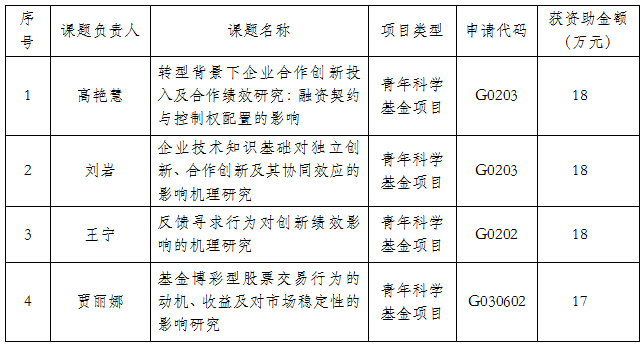 以此为契机,学院将全面总结基金项目申报经验,继续做好动员培训、组织工作,并培育有实力的团队及个人,努力提高申报数量及质量,鼓励年轻教师积极申报青年基金项目,力争使青年基金成为其学术生涯的“第一桶金”;在加强过程管理、细化日常服务和提高结项质量等方面开展更多的工作,不断提升学院的科研影响力和学科竞争力,为我校科研工作和学科建设迈上新的台阶作出更多贡献。