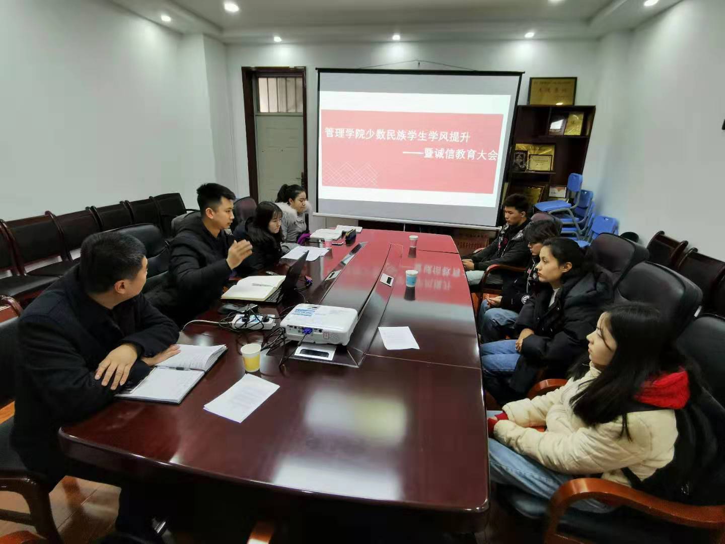 为更深入了解taptap点点188少数民族学生的学习情况,帮助他们解决学业困难、顺利完成学业,12月19日中午,taptap点点188在人文管理楼312会议室召开少数民族学生学风提升暨诚信教育座谈会。会议由辅导员王志刚主持,院党委副书记于稀水参加。