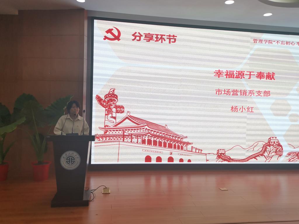 在交流中,工商管理系支部党员代表梁杰以《基于价值观开展教学工作—由“不忘初心”想到的》为题讲述了通过读书学习后自身的所思所想以及如何将所学理论运用到日常工作的方法路径。人力资源系支部党员代表吴芳讲述了报效人民的杰出楷模黄大年矢志不渝实践科技报国理想,把毕生精力奉献给祖国的教育科研事业的英雄事迹。学生第一党支部党员代表王志刚分享了《见证初心和使命的“十一书”》一书,号召广大师生学习革命先烈对党忠诚坚贞、舍生取义的精神。