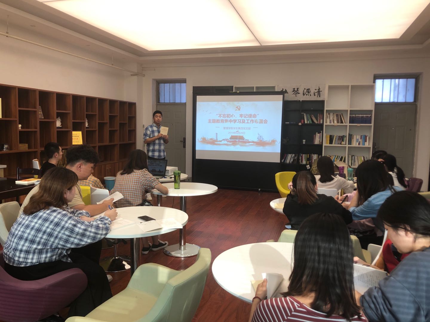 本次活动是在学院各支部经过前期学习分享基础上开展的学习体会总结会。按照“不忘初心、牢记使命”主题教育要求,自2019年6月以来,学院党委组织开展了“读原著、学原文、悟原理”读书活动。学院依托明德读书社,为广大党员开辟专门学习场地,以支部为单位定期组织开展党员读书学习活动。此外,结合本次主题教育购书,充实主题教育书架,营造浓厚的学习氛围。日常学习期间,广大党员读原著并对各自所读所思所悟进行深入的交流,同时结合各自工作、学习实际,深刻总结改进存在的问题和不足。通过本次学习交流进一步提升了全体党员的思想认识、责任担当、能力水平,深化了对党的初心和使命的认识,全面推动了主题教育工作走向纵深走向实处。(撰稿:李根 审稿:徐焕章、于稀水)