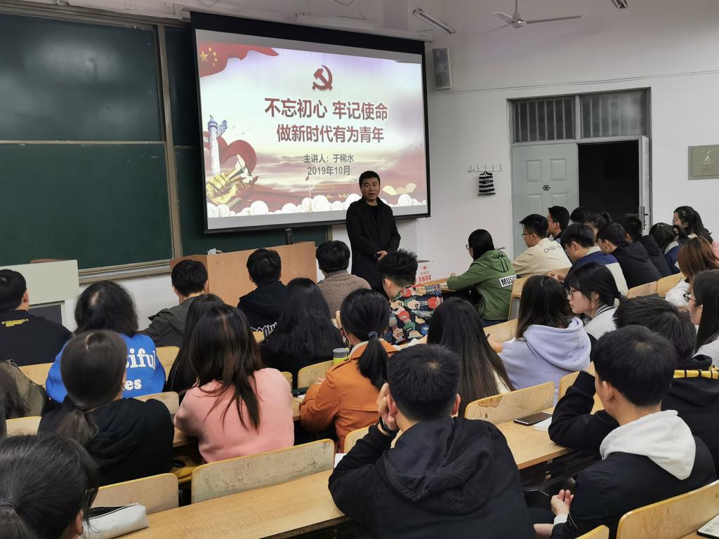 开班典礼在全体学员热烈的掌声中落下帷幕。于稀水为培训班同学们讲授党课第一讲《不忘初心、牢记使命做新时代有为青年》,此次党校培训课将持续至11月2日,采取理论讲授、个人自学、小组讨论、交流分享、结业考核相结合的方式,切实塑造一批政治素质高、基础理论扎实的入党积极分子。