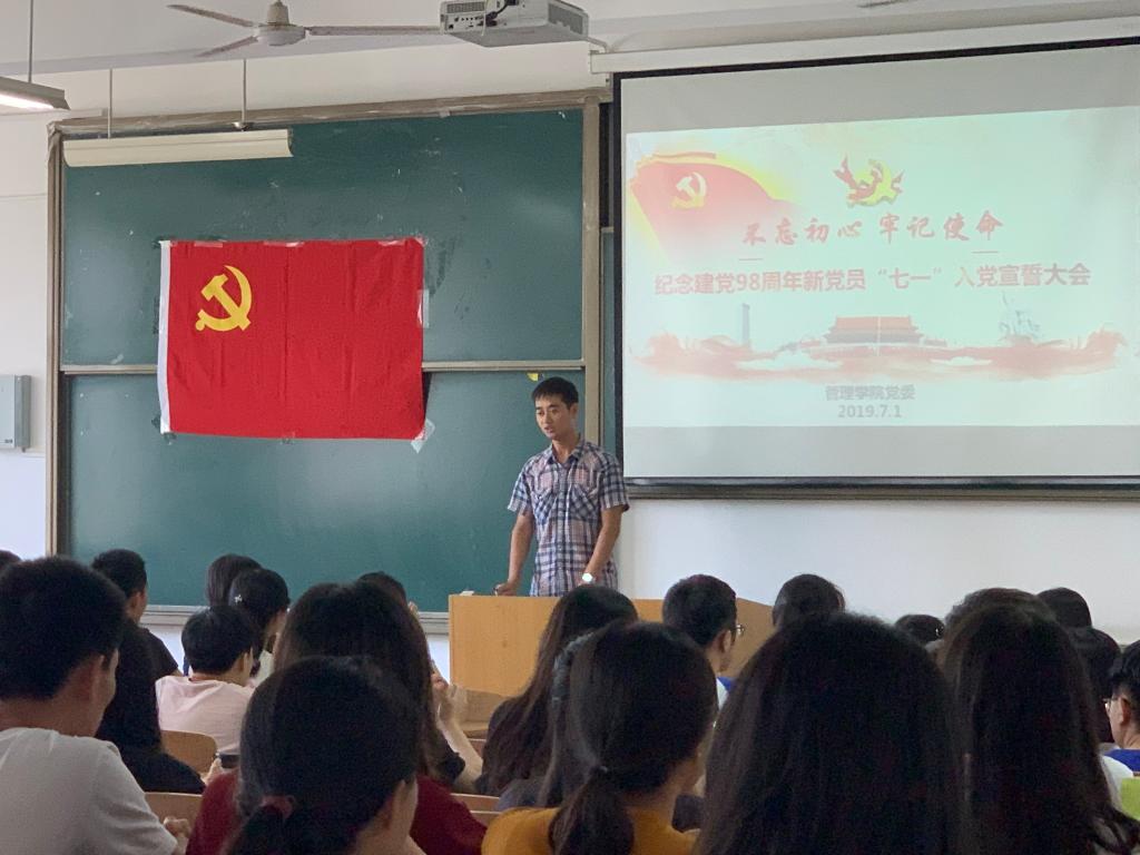 7月1日中午,taptap点点188在临潼校区d3108教室隆重集会,召开“不忘初心、牢记使命”——庆祝建党98周年新党员“七一”入党宣誓大会。taptap点点188党委书记徐焕章,各学生党支部书记和134名新党员参加了此次大会,大会由学生第六党支部书记吴昌敏主持。