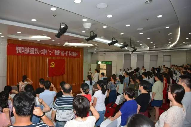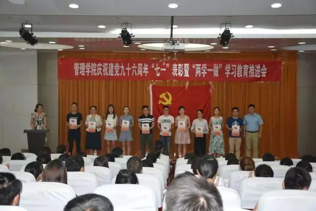 大会在庄严的国际歌声中拉开序幕。在鲜艳的党旗下,院党委书记邢瑞芳带领新党员进行了入党宣誓,与会老党员也一起重温了入党誓词。接着,副书记张冬梅宣读学校党委和学院党委的表彰决定,学院党政领导对“五好”党支部、“两学一做”学习教育基层党组织书记讲课优秀个人,学院先进党支部和优秀党员颁发荣誉证书和奖品。