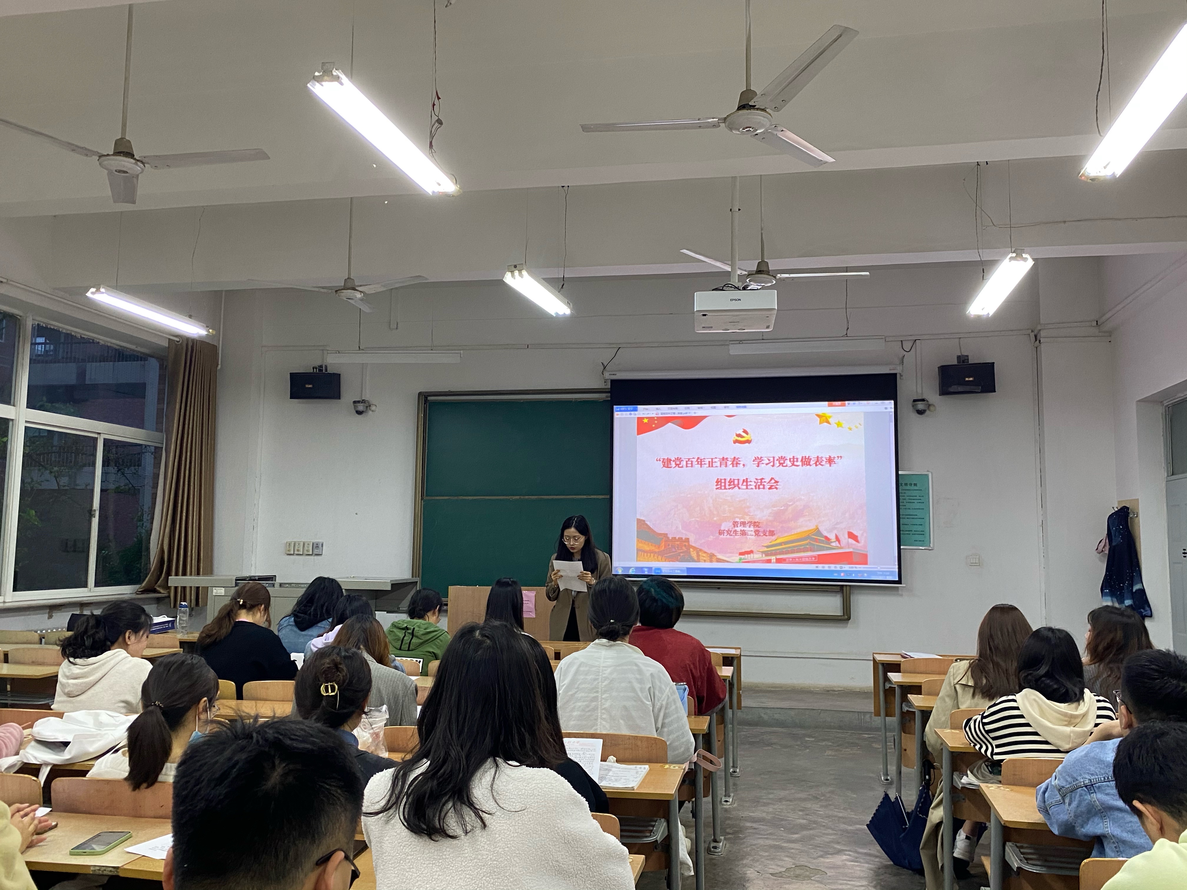 学习百年党史,传承红色基因。会议伊始,董梦园带领全体党员重温入党誓词,铭记党员责任。接着带领大家重温百年奋斗之路上的伟大中国精神——五四精神,传达了习近平总书记4月30日在纪念五四运动100周年大会上发表的重要讲话。习近平总书记指出,青年是整个社会力量中最积极、最有生气的力量,国家的希望在青年,民族的未来在青年。五四运动以来的100年,是中国青年一代又一代接续奋斗、凯歌前行的100年,是中国青年用青春之我创造青春之中国、青春之民族的100年。习近平总书记高度评价了五四运动的历史意义。同时董梦园带头表示作为青年学生要继续发扬五四精神,以实现中华民族伟大复兴为己任,不辜负党的期望、人民期待、民族重托,不辜负我们这个伟大时代。