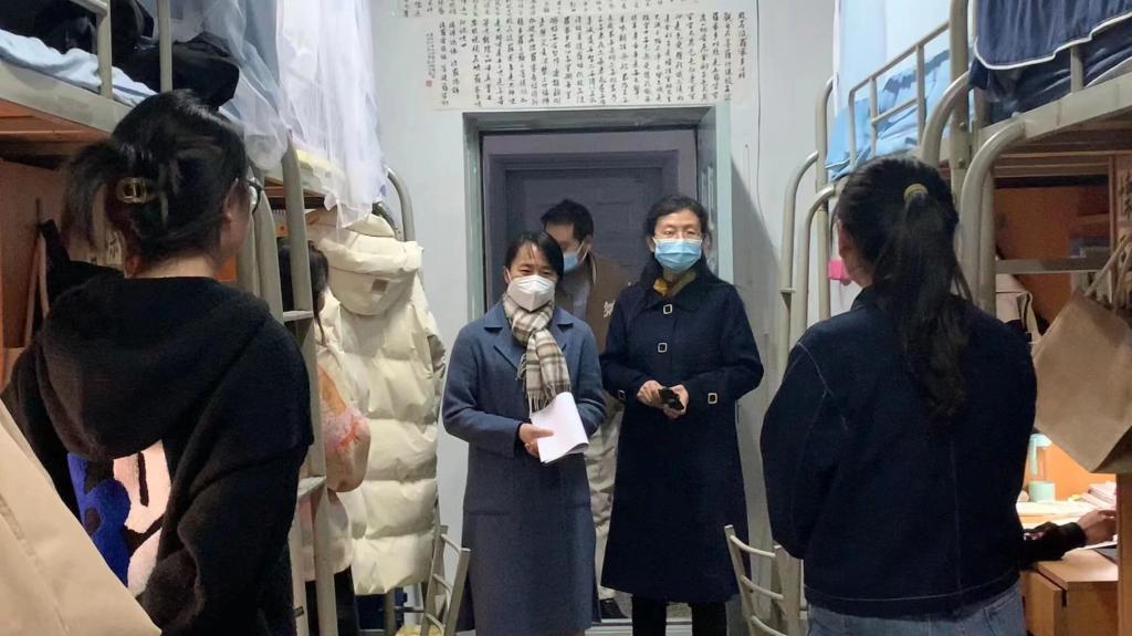 11月28日上午,学院党委书记王爱华、副院长王渊走访了研究生工作室。11月28日晚,王爱华、院长李艳、院党委副书记代锴,全体在校值守辅导员走访了不同年级的部分学生宿舍。走访中,学院党政领导、辅导员老师与同学们亲切交谈,一是向同学们宣传学校最新疫情防控的政策及要求、向同学们了解在封闭管理期间生活和学习中存在的困难、对学校和学院管理方面的意见建议,并嘱咐同学们一是做好个人防护及健康监测、保持宿舍卫生、定时通风及消杀、按时参与核酸检测,不点外卖,最大限度减少网购,将疫情风险杜绝在校外;二是提醒同学们要加强安全防范,高度警惕陌生来电及网络推销,谨防电信诈骗;三是检查了学生宿舍床架衣柜、插座、暖气片等设施,提醒同学们注意宿舍安全,防止火灾发生。走访过程中,学院领导和辅导员老师还就同学们关注的大学生活适应、职业发展迷茫、课程学习困难、求职就业等问题进行了一一解答,有针对性地给予了指导意见。