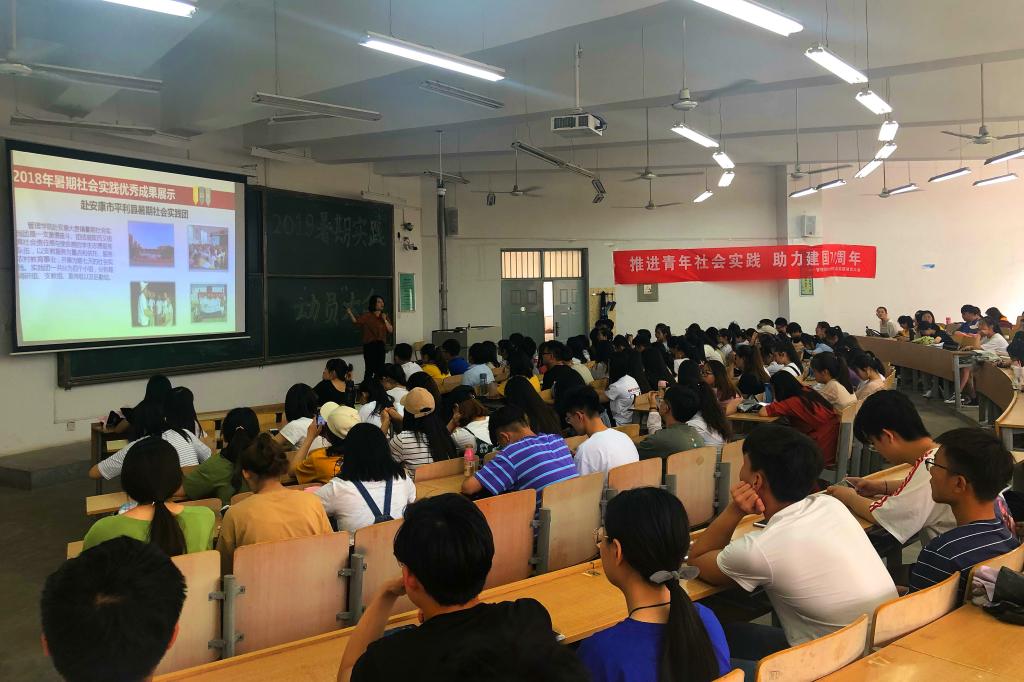 6月12日、14日中午,taptap点点1882019年暑期社会实践动员大会在临潼校区B133教室举行。16、17级的班长、团支书、宿舍长及18级全体学生共600余人参加了此次动员大会。团总支书记王馨可主讲。