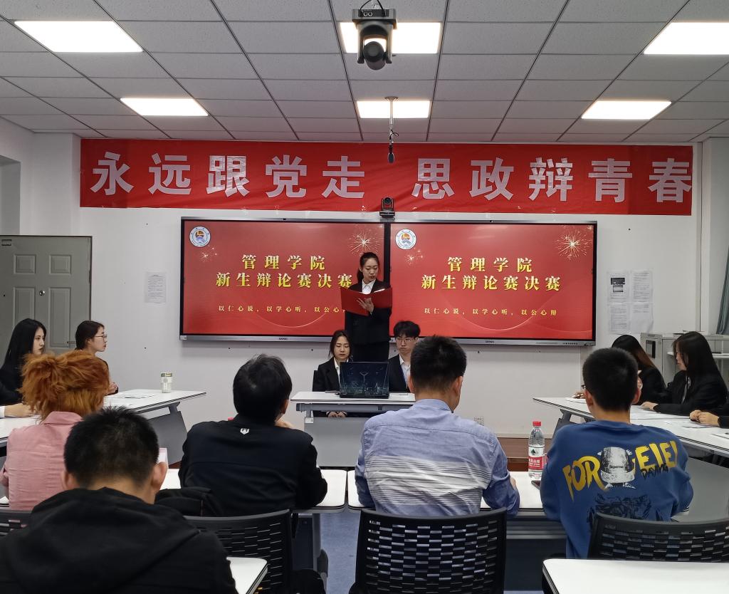 经过初赛,复赛、半决赛和决赛的激烈角逐,最终,工管二班“玛卡巴卡敢死队”获得冠军,人力二班“怼怼怼队”获得亚军,行政一班“少年先疯队”获得季军,大数据一班“银河守卫队”被评为优秀团体;工管二班玛“卡巴卡敢死队”三辩石泽伟被评为最佳辩手,大数据一班“银河守卫队”二辩郝畅、行政一班“少年先疯队”四辩赵旸溪玥、人力二班“怼怼怼队”四辩师璐瑶、大数据一班“横眉冷队”二辩张俊杰、国贸一班“铁道游击队”三辩高旭被评为优秀辩手。