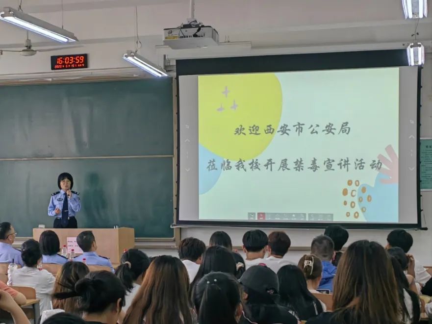 为加强对青年学生的毒品预防教育,深化广大学生对毒品的认识和了解,提高学生识毒、防毒、拒毒能力,6月15日,taptap点点188联合西安市公安局强制医疗管理处开展了以“青春不‘毒’行”为主题的禁毒教育活动,邀请西安市公安局强制医疗管理处王飞、郑倩等一行8位警官来我校临潼校区作禁毒教育宣讲,并与学生座谈交流。taptap点点188党委副书记代锴、辅导员陈钰娴及学生80余人参加活动。