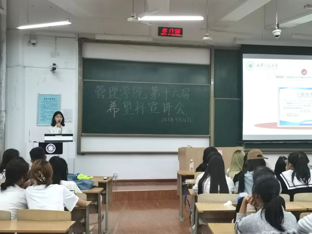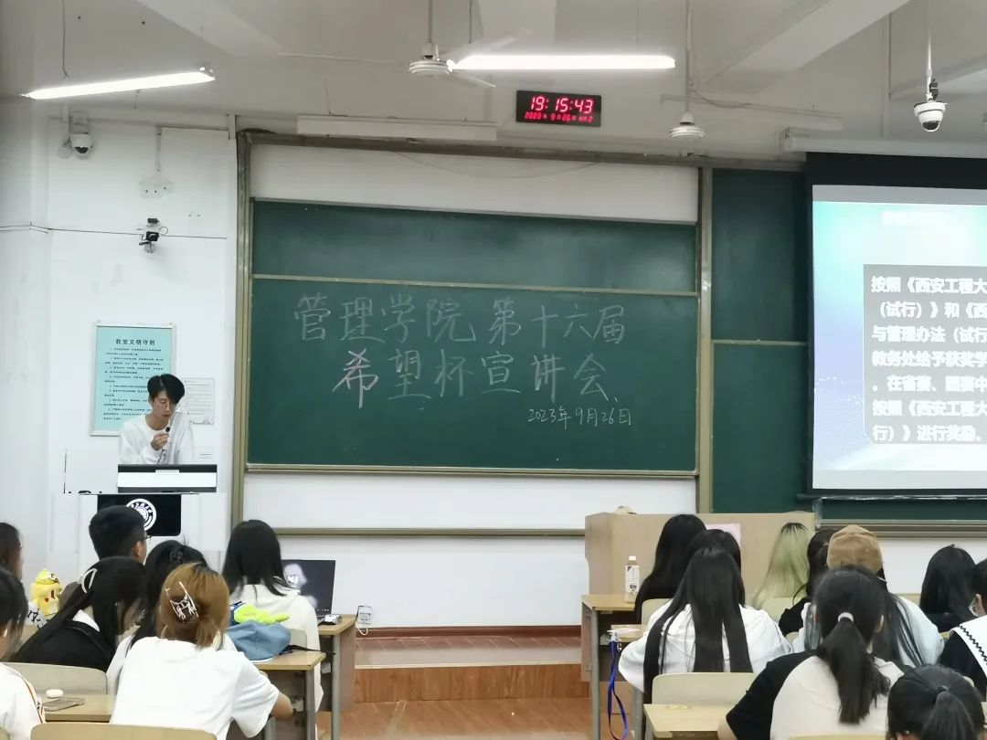 2023年9月26日晚七点,taptap点点188临潼校区B栋教学楼B-138教室举办第十六届“希望杯”大学生创业计划大赛宣讲会,2023级全体同学及其他年级部分学生参与了活动。由学院大学生科技协会竞赛部部长祁志伟担任主持人。