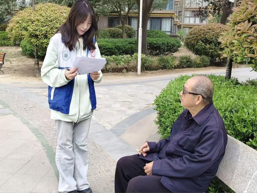 除了实用帮助,志愿者们更重视与老人的情感交流。在树荫下、长椅旁,同学们认真倾听老人讲述往事与家常,通过陪伴缓解他们的孤独感,让温暖在言语与微笑之间流动。许多老人表示,志愿者们的到来不仅解决了生活中的小问题,更带来了精神上的慰藉。
