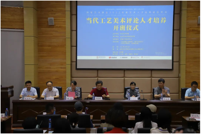 2022年6月18日,资助项目开班仪式在山东艺术学院报告厅举行。中国工艺美术学会常务副会长任建新,中国艺术研究院马克思主义文艺理论研究所所长、《文艺理论与批评》主编鲁太光,中国美术家协会油画艺委会副主任兼秘书长、山东艺术学院院长徐青峰,学校党委委员、副院长荆雷,党委委员孔宪坤,中国美术家协会陶瓷艺委会秘书长、山东艺术学院设计学院院长远宏出席开班仪式,开班仪式由荆雷主持。