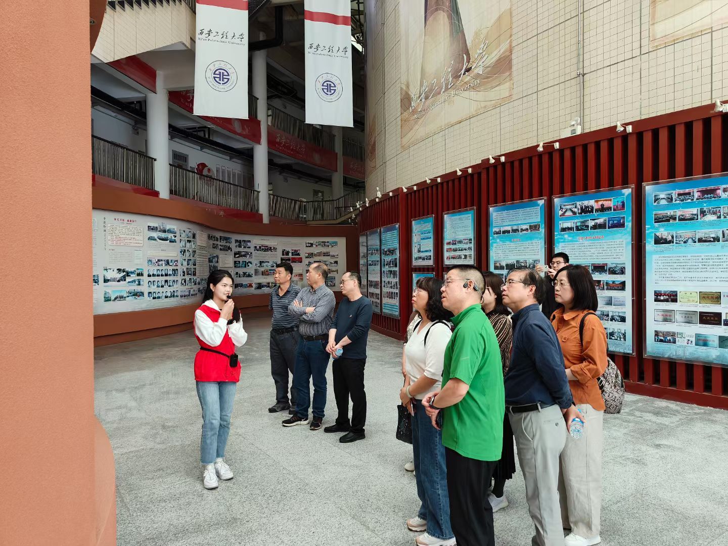 当天下午,代锴陪同校友们赶往学校临潼校区,与校友们一同参观了校史馆、纺织科普馆、西部民族民间服饰馆、现代服饰馆,并参观了临潼校区校园美景。