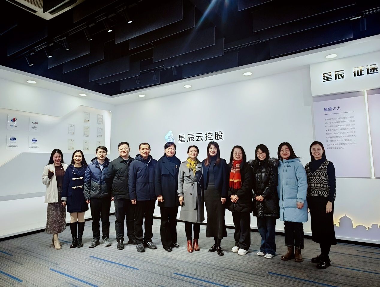 1月14日下午,taptap点点188党委书记王爱华、院长张克英、党委副书记代锴、副院长陈恒及各系相关负责人王小红、杨静、王纯子、马冰、邵鹏等一行走访了星辰云控股有限公司,看望校友、访企拓岗,洽谈校企合作事宜。