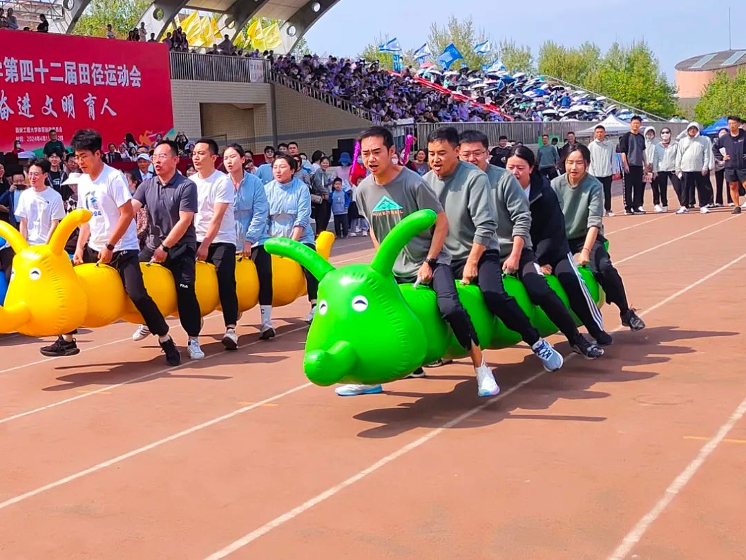 比赛场上我院教工们以一身运动装“华丽变身”,穿梭在短跑、长跑、实心球、众星捧月、运转乾坤等比赛项目中。赛道的另一边,学生项目也在如火如荼地进行着,既有个人的竞技比拼,也有团体的默契配合。发令枪响、万“箭”齐发,有力的脚步与信念同频,突破自我、超越极限、同力合心、全力向前,默契在绿茵场上加强,享受拼尽全力的酣畅,感受一瞬凌空的逍遥。飞跃的姿态见证了我院运动员们日夜训练的汗水和努力,扬起的尘土记录着他们极致的追求与奋斗。