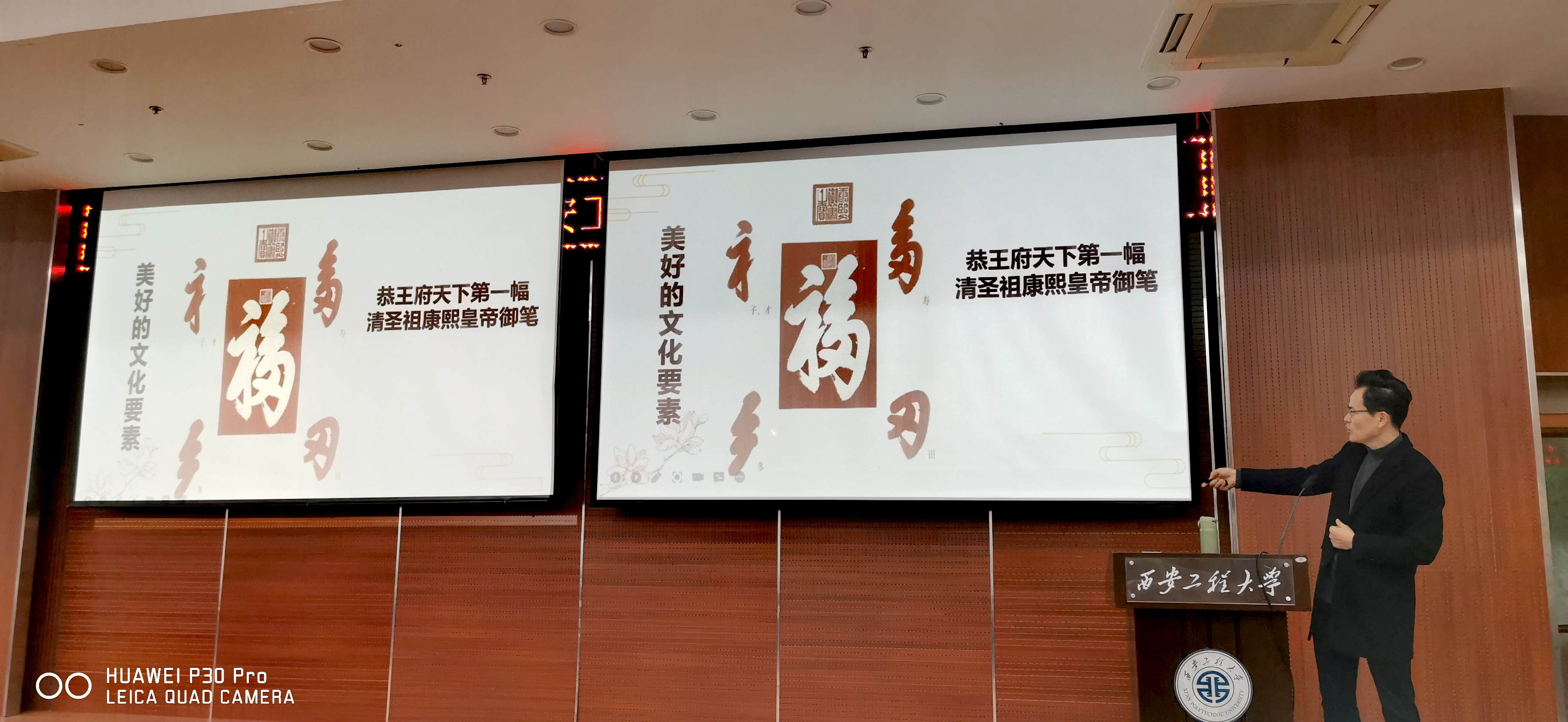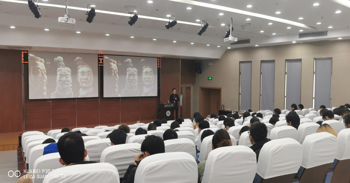 讲座上,谷老师以演示文稿的形式向大家介绍了文创产品的发展过程,并展示了多款其参与过的文创产品:“宫铃摇曳”梦回盛世大唐,“非礼人俑”蕴含东方之美,“衣冠神兽”传承人文经典,“福气雕刻”兼具形意想通。精致且精妙的文创产品令观众叹为观止,新奇而新颖的创意融入到冰冷的“国家宝藏”,也使那见证过沧海桑田的文物带着中华文化的温情与温良。最后,谷老师为同学们展示了一些其制作的文创产品图样,介绍过其简单的创作思路后结束了这场意义非凡的讲座。