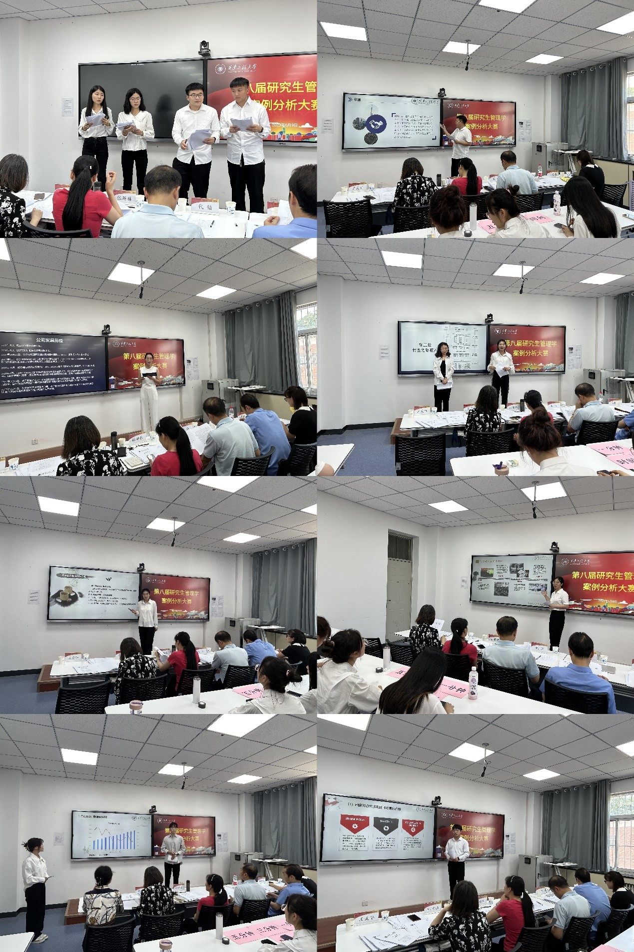 决赛现场,8支硕士生队伍围绕“危中寻机,稳中求变——“青木川”品牌定位”、“从“世界工厂”到“中国智造”:格兰仕“多元化布局+智能制造”的战略转型之路”、“变中求进:善融的歌尔邂逅“元宇宙””、“实业报国,从芯做起:中讯四方的专精特新“ 小巨人” 成长之路”4个案例进行现场展示,以专业角度分析案例,并提出解决问题的方案,并进行展望和规划。展示环节过后,评委老师针对报告中所展现的案例矛盾冲突问题、所使用的分析方法等内容展开提问,各队伍则根据调研案例的实际情况与对问题的看法与理解逐一作出解答,凭借所学理论知识回应了评委老师的提问,展示出了较高的学术素养。