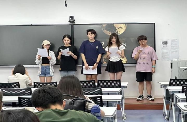 在课程汇报环节,同学们各自分享演讲内容,与老师们积极互动。在小组演讲中,武悦、熊英怡、蔡燕彤、李瑞、段昕航演讲的题目是——Toward The Future And Beyond,体现出当代大学生对未来的美好期待;在个人演讲中,陶晴演讲的题目是——Youth Employment After The Covid-19,提出了疫情期间年轻人就业这一现实问题。祖力护马尔•阿不力米提演讲的题目是——Friendship,对“友谊”维系从不同角度进行了深刻思考。