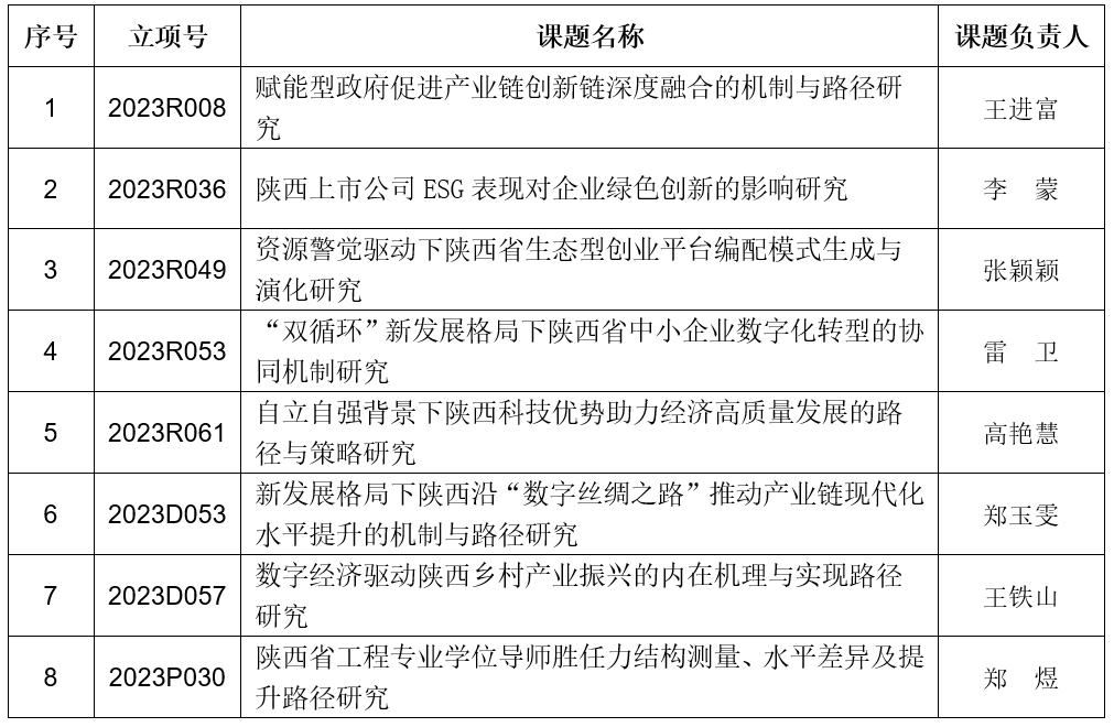 9月21日,陕西省哲学社会科学工作办公室公布了2023年陕西省社会科学基金年度项目立项名单,我校本年度获批立项17项,其中taptap点点188立项8项,获批立项数创历史新高。(撰稿:张余丹;审稿:王渊)