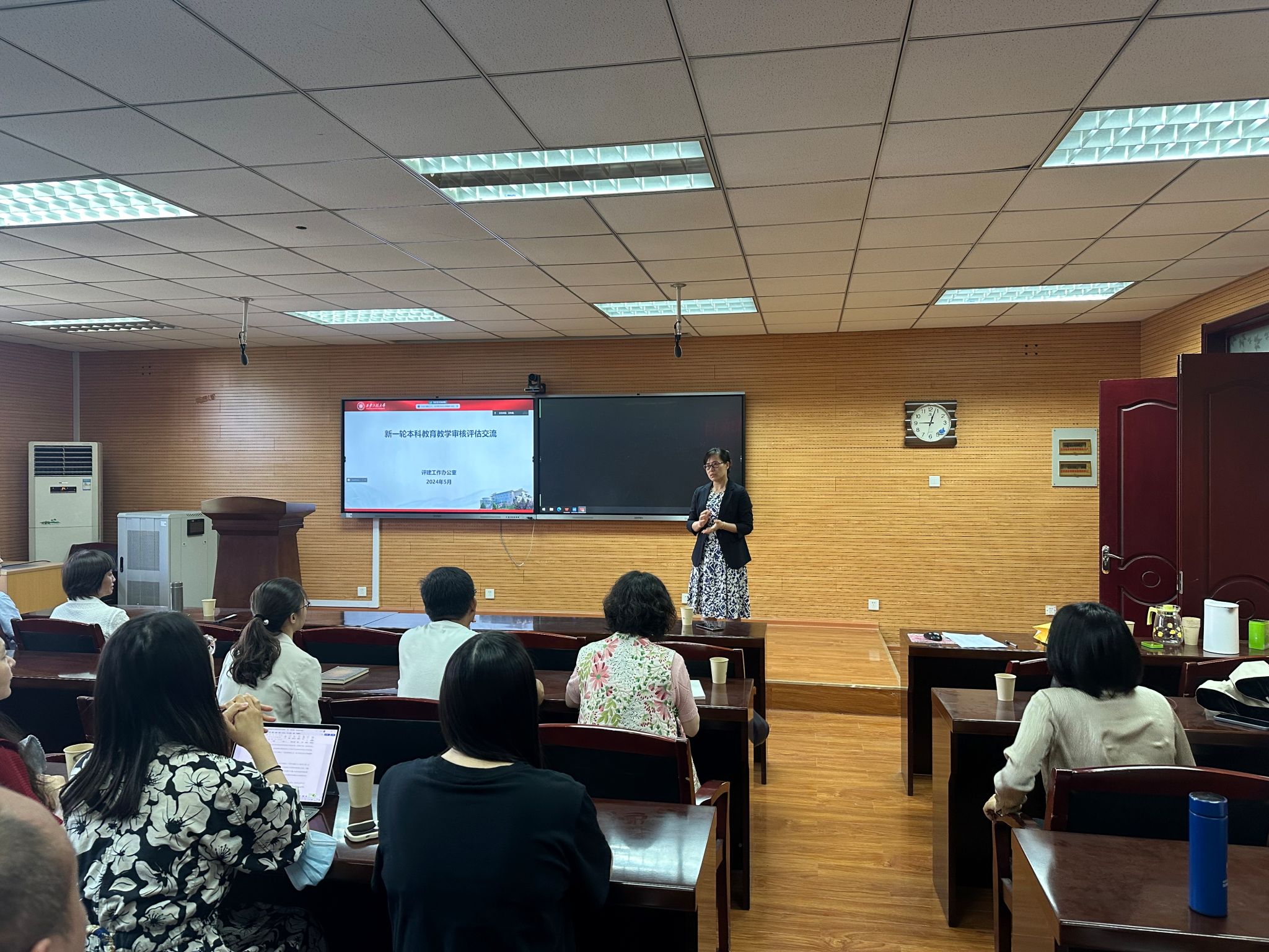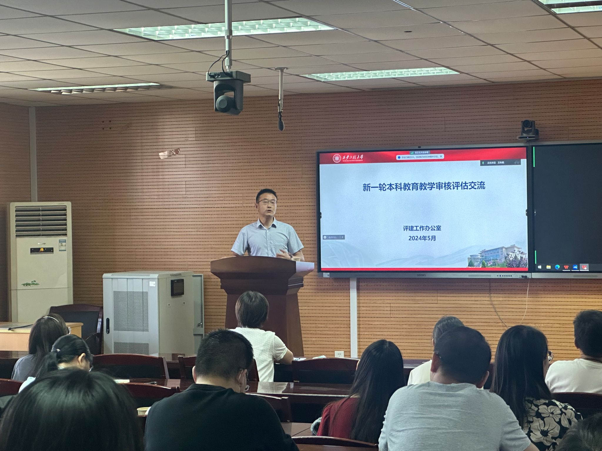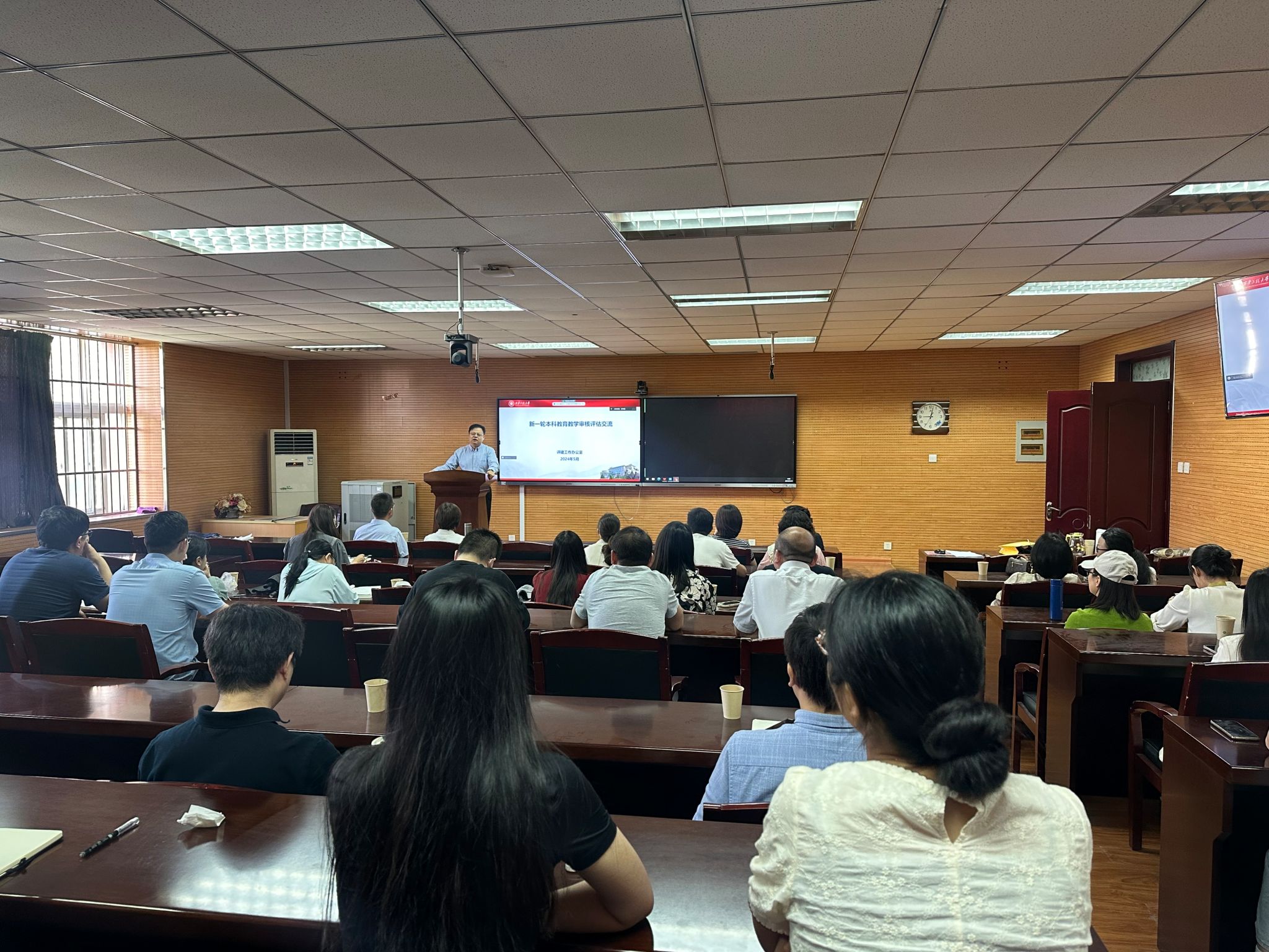 培训会伊始,胡新煜首先就本科教学审核评估的准备工作及评估期间的流程行规范进行了详细解读。他指出,本科教学审核评估是对学校教学质量的一次全面检验,对于提升我校的教学水平和声誉以及促进未来师生发展具有重要意义。胡新煜从培养方案修订、试卷和毕业设计归档、试卷资料填写及座谈访谈工作等方面,逐一介绍了评估期间的各项要求,使教师们对迎评工作有了更加清晰的认识。同时,胡新煜还结合我院实际情况提出了针对性的改进措施,并鼓励教师们要积极参与迎评工作,以评促建、以评促改、以评促管、评建结合、重在建设,不断提高教学质量和水平。