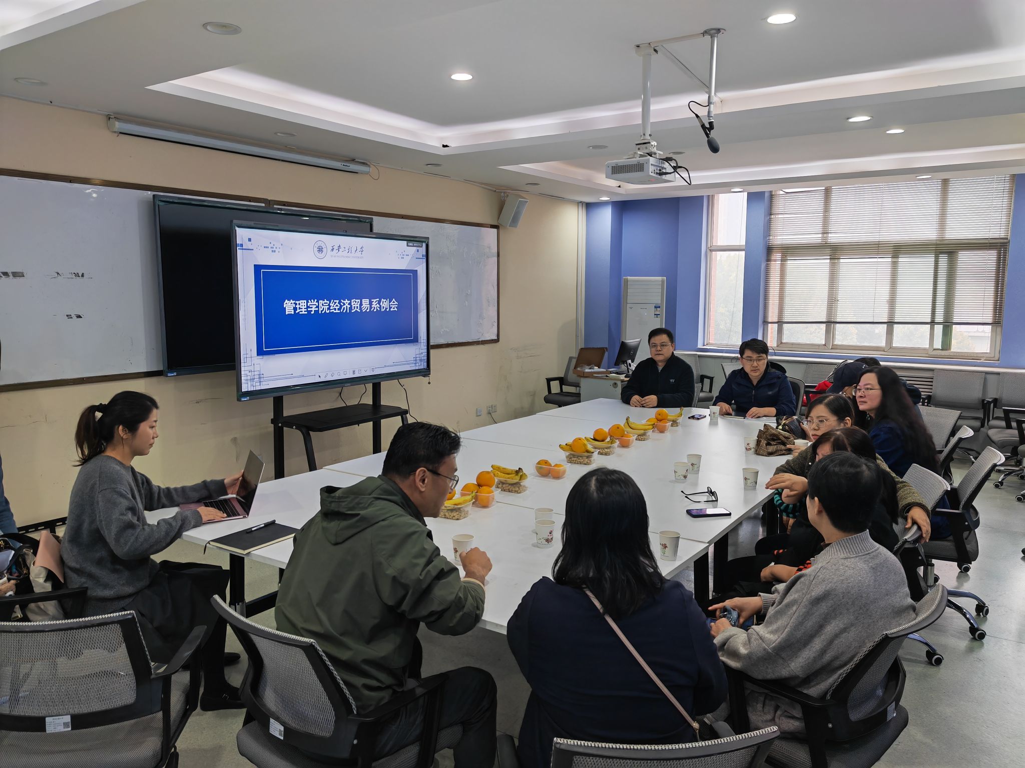 2023年10月30日下午,国际经济贸易系在金花校区7-607教室召开了例会。本次会议由系主任邵鹏老师主持,全系教师齐聚一堂,共同探讨国贸专业建设。