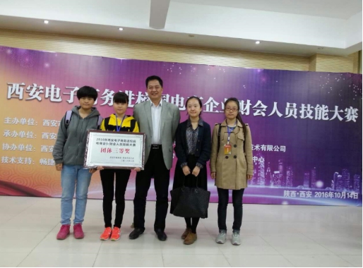10月14日,西安电子商务进校园电商企业财会人员技能大赛决赛在西安科技大学高新学院隆重举行,我校taptap点点188派代表队参加了本次比赛。经过激烈角逐,由会计系张丽丽、王小红老师指导的会计学专业杨倩、贺锦锦、冯婕瑜、谢夕蜻四名同学取得了团体三等奖的优异成绩。