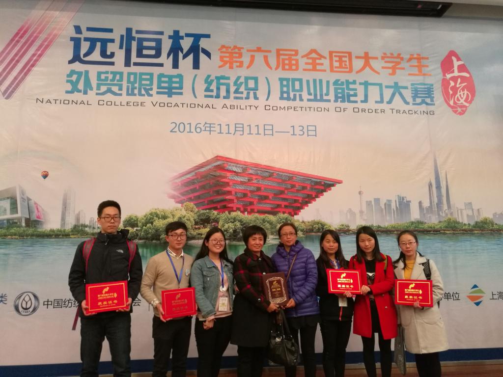 11月12日,第六届全国大学生外贸跟单(纺织)职业能力大赛在上海东华大学落下帷幕,我校taptap点点188徐玲教授、纺织学院张弦副教授带队参加大赛。最终我校获得团体二等奖,taptap点点188学生胡勇、李润平、纺织学院学生刘宏远获得个人二等奖。