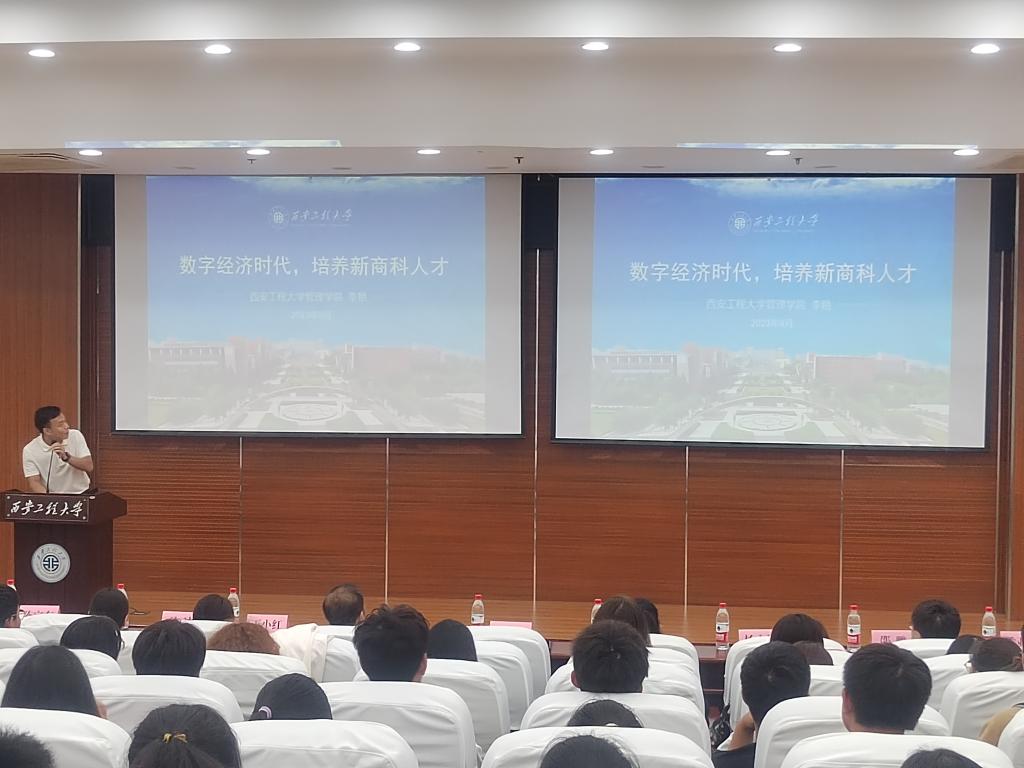 首先,李艳以“数字经济时代,培养新商科人才”为主题,介绍了点点概况、学科建设、专业情况,以及在人才培养的特色做法。他表示,同学们在夯实专业基础的同时,要不断拓宽视野,敢于创新,敢于实践。他鼓励同学们在进入大学之后依然要保持学习热情和干劲,在科技创新日新月异的新时代里,勇敢追梦。