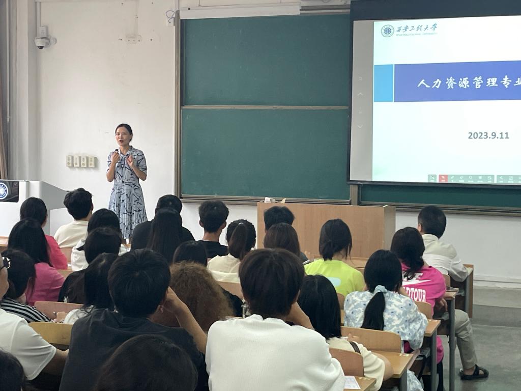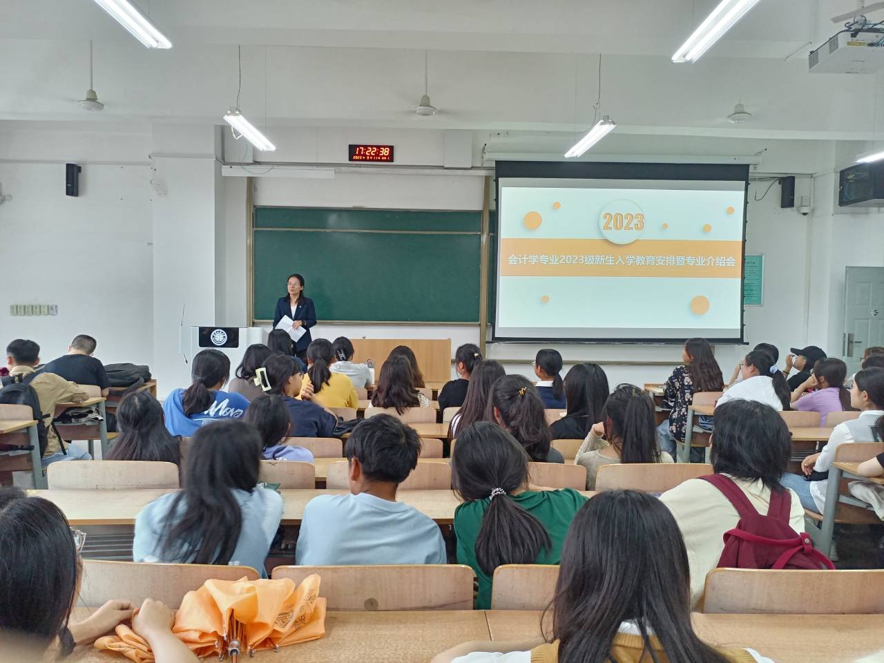 9月11日下午,taptap点点188在图书馆二楼报告厅及教学楼A座相关教室召开2023级本科生入学教育暨专业介绍会。学院副院长李艳、党委副书记代锴、工商管理系系主任鄢飞、经济与贸易系系主任邵鹏、会计系系主任王小红、人力资源管理系系主任马冰,团总支书记王馨可、新生辅导员李根、教师代表杨小红、陈宝东、罗波、孟亚丽、李蒙及2023级全体新生参加会议,会议还邀请国际合作与交流处侯梦来老师做国际交流项目介绍。会议分两个阶段进行,正科级辅导员张妍主持第一阶段会议。