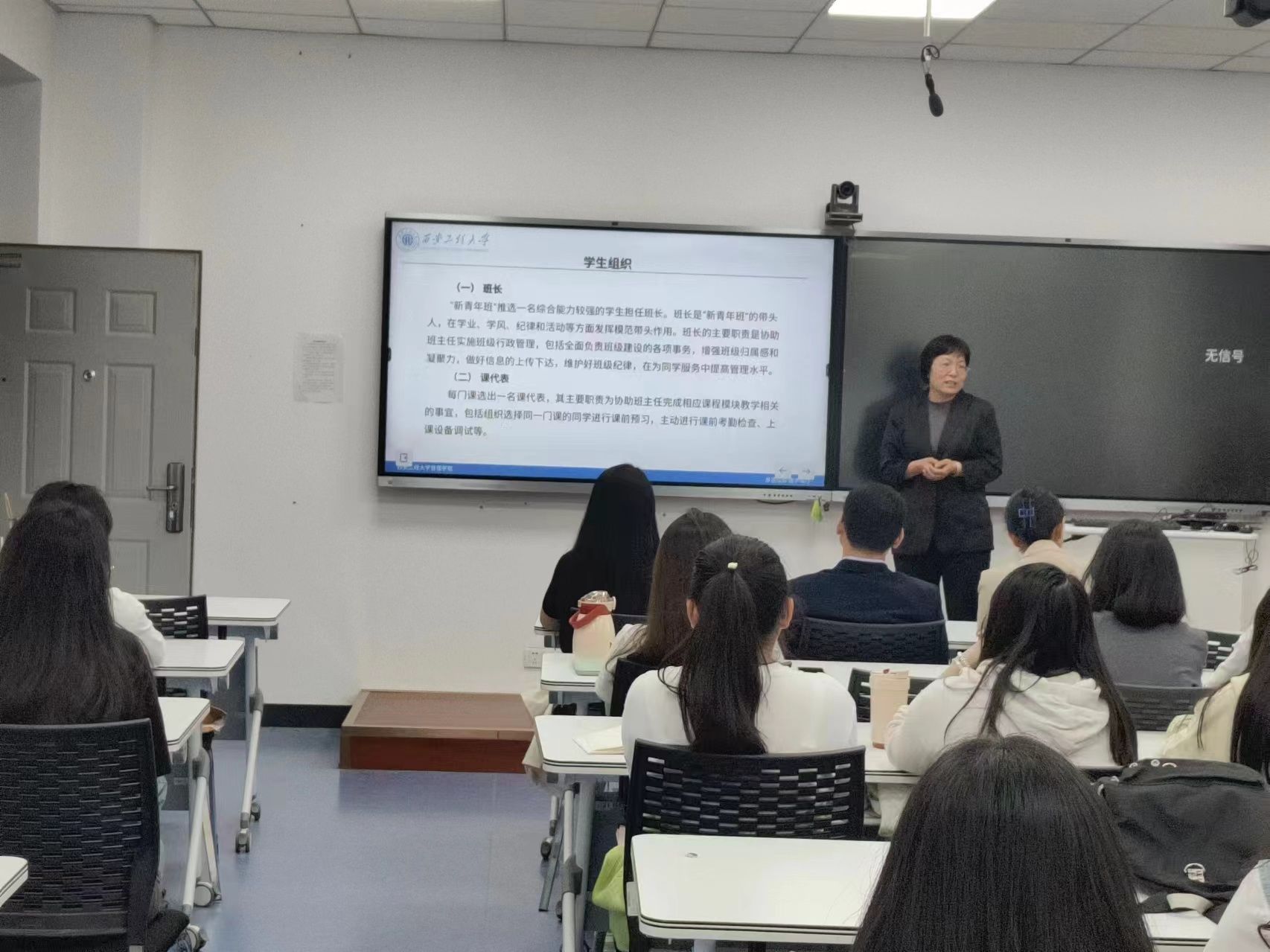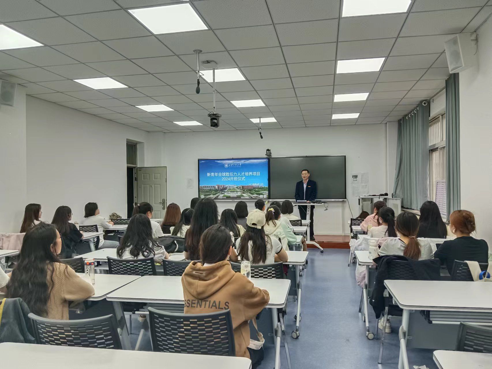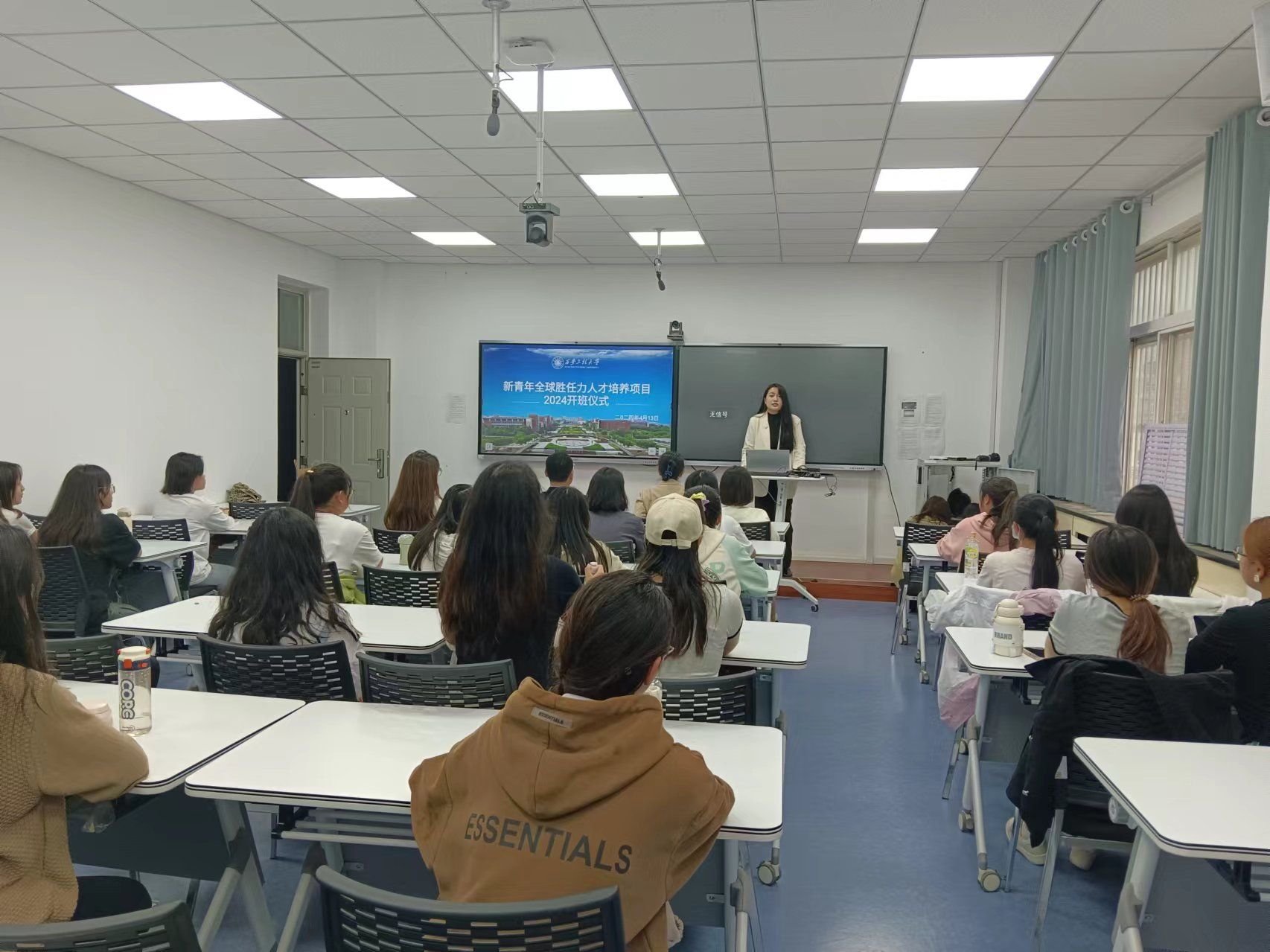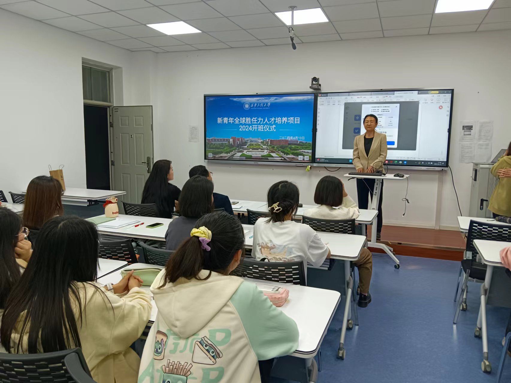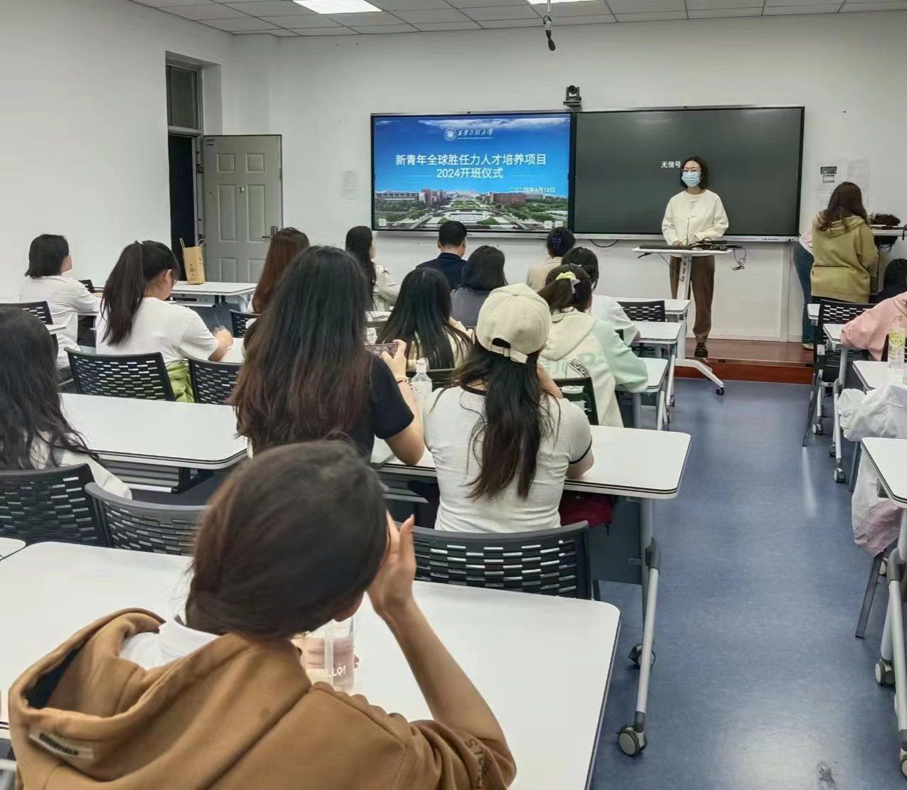 班主任李晓敏介绍了“新青年班”的课程安排和上课要求。她希望同学们通过项目的学习,学有所获,学有所成。