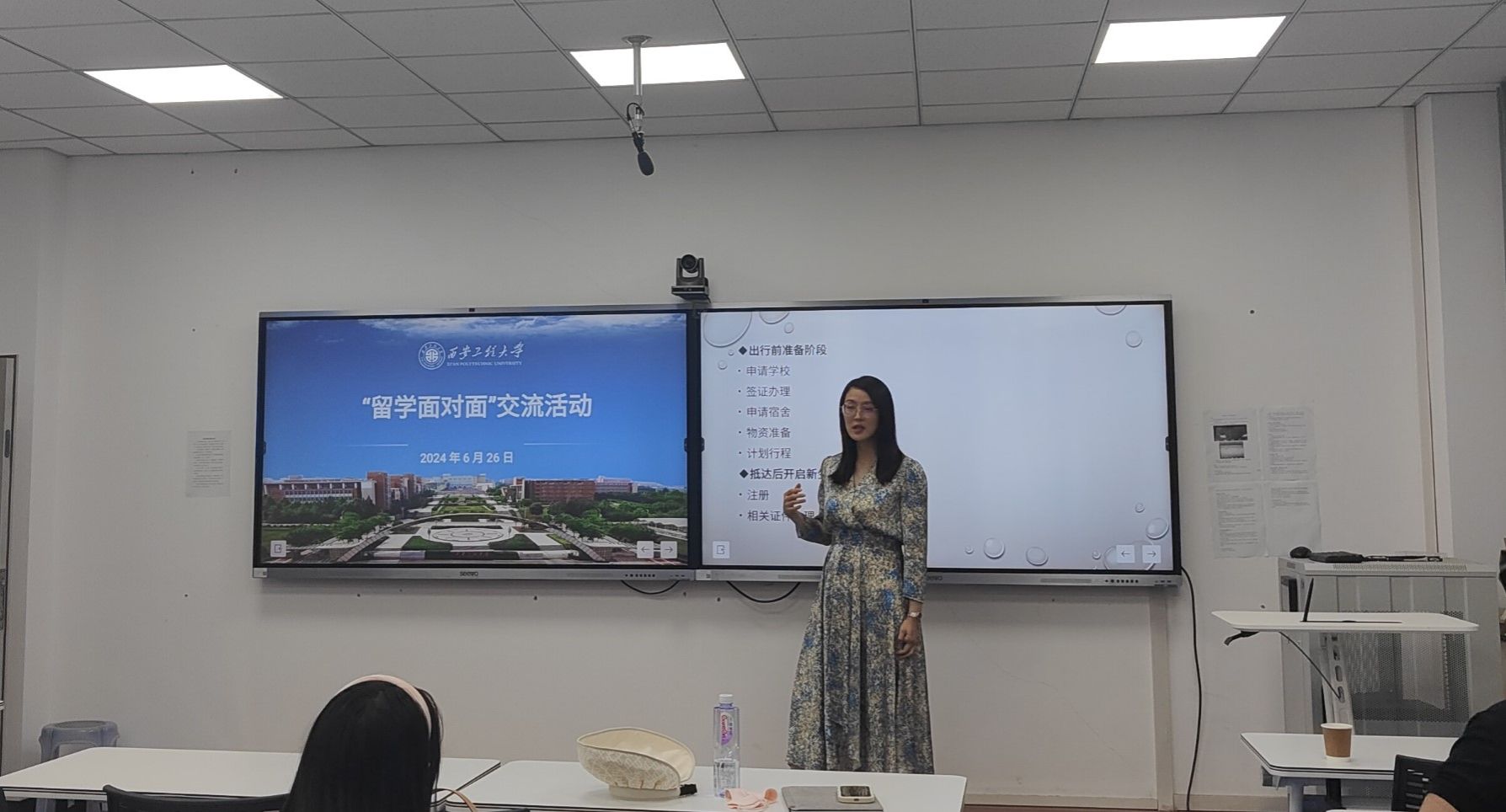 李丹博士毕业于英国谢菲尔德大学,她向同学们细致地讲解了留学准备的各个环节,从学校申请、签证办理到宿舍选择等方面分享了自己的经历和经验,鼓励大家保持积极的心态,学会适应变化,不断增强解决问题的能力。