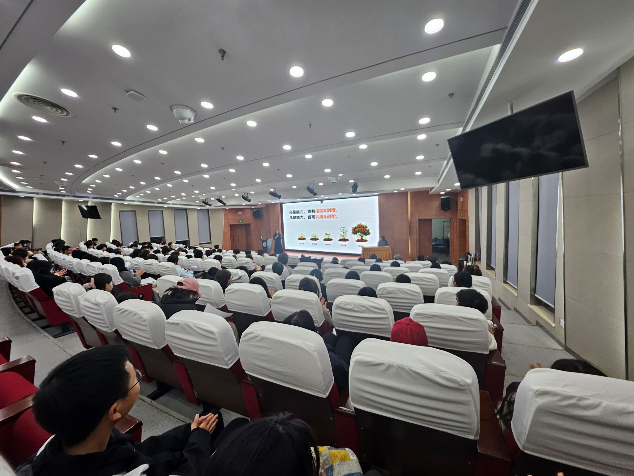 聘任仪式后,曹田嘉子作了两场职业发展专题讲座。首场“面试官底层逻辑心法解读”主题讲座,聚焦大四学生与研究生,深度剖析百强企业人才需求,揭秘面试官视角,传授面试技巧与策略,助力学生精准对接职场。第二场“我与就业‘手牵手’”主题讲座,面向全体本科生及研究生,以实战为导向,引导学生自我评估,明确职业规划,构建框架思维,制定实施路径,并结合案例分析,为学生们提供实用自评工具,助力学生职业生涯,现场反响热烈。